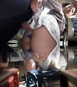 Seductive librarian jack in her chair exciting a customer