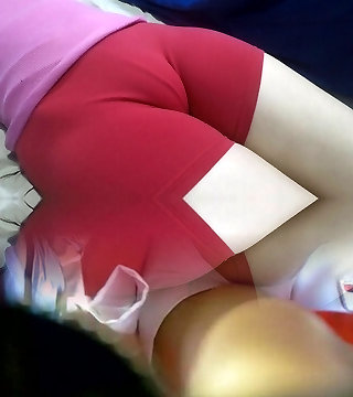 Teen tight pussy in a short leggings with a giant package to squeeze.